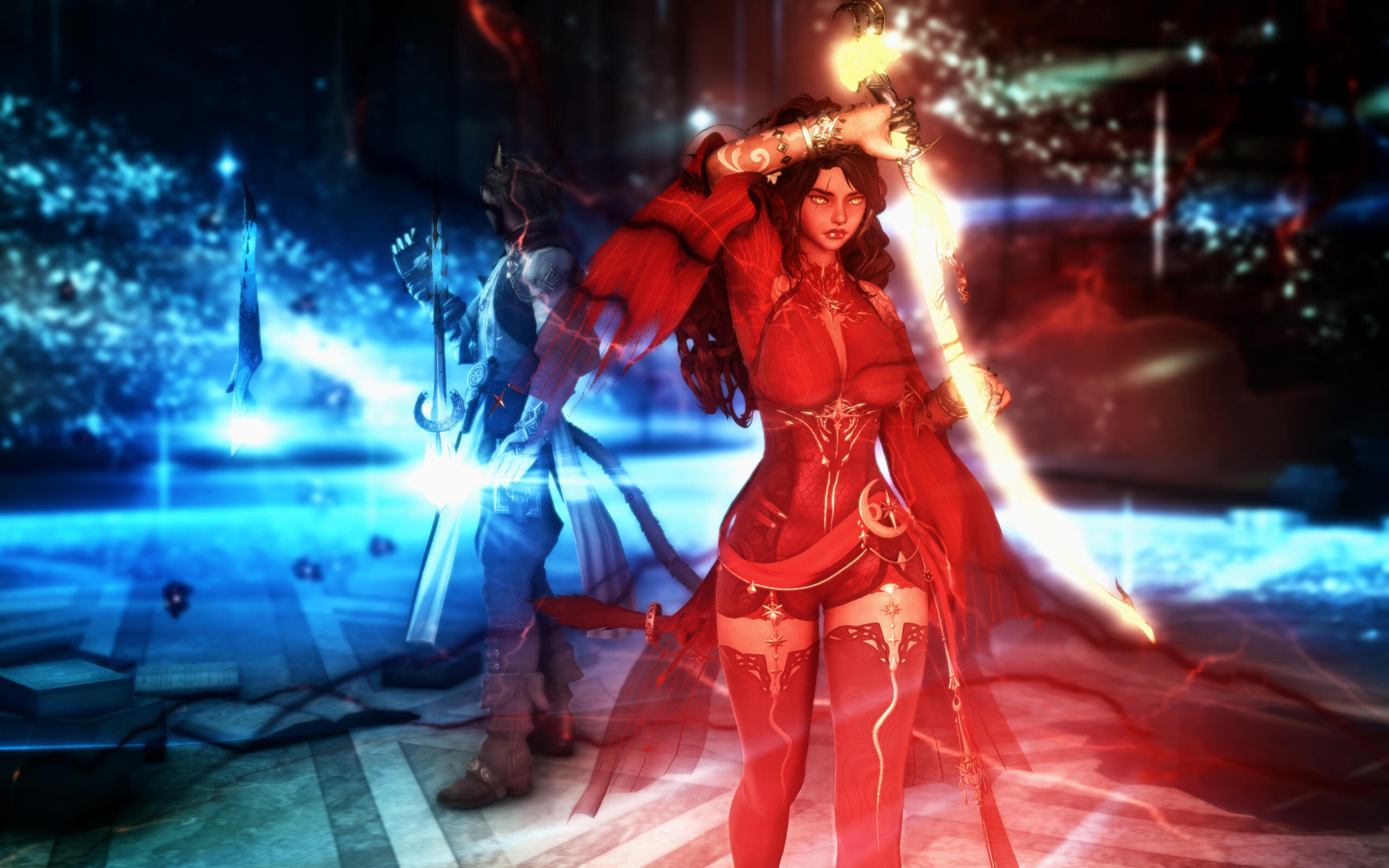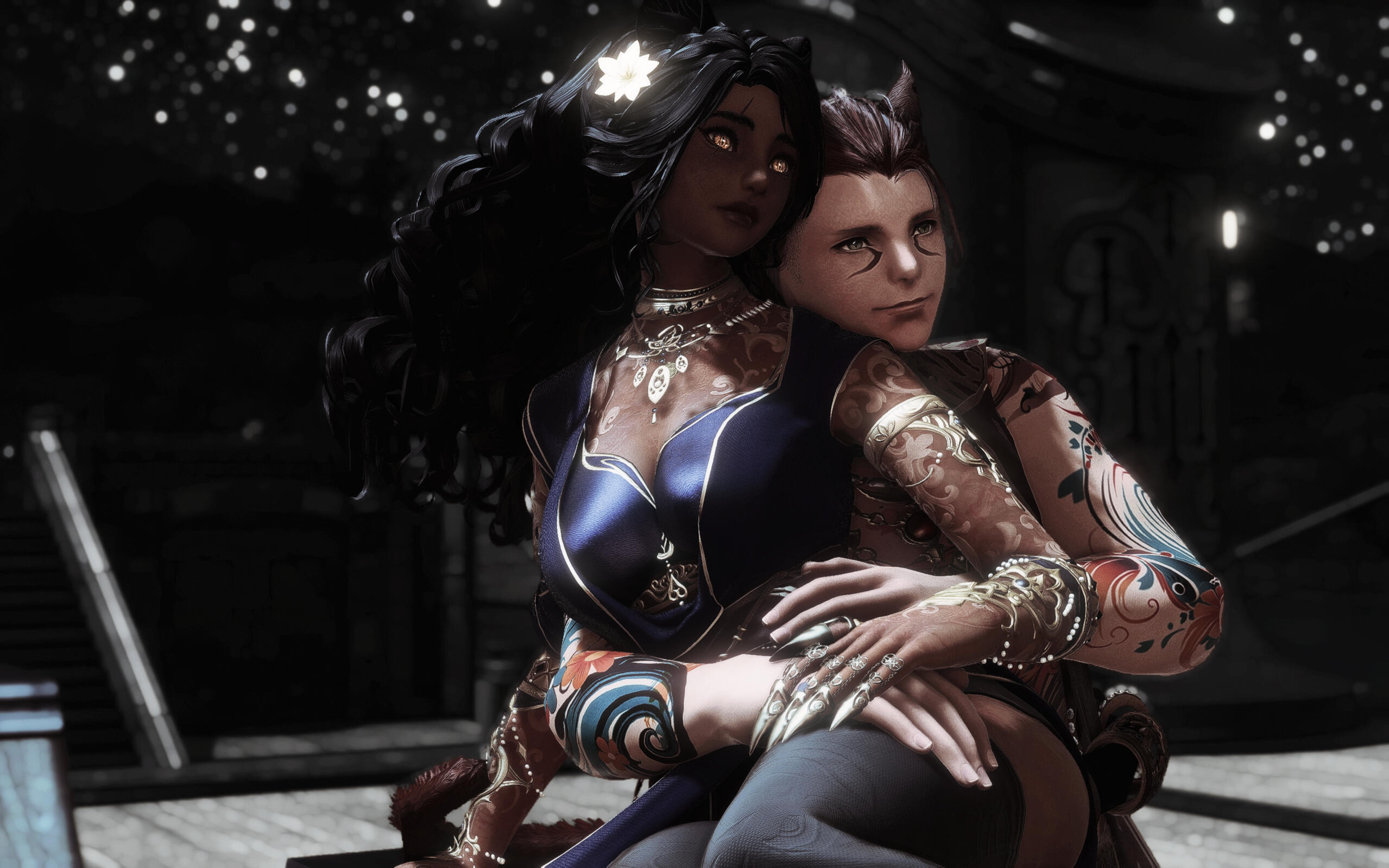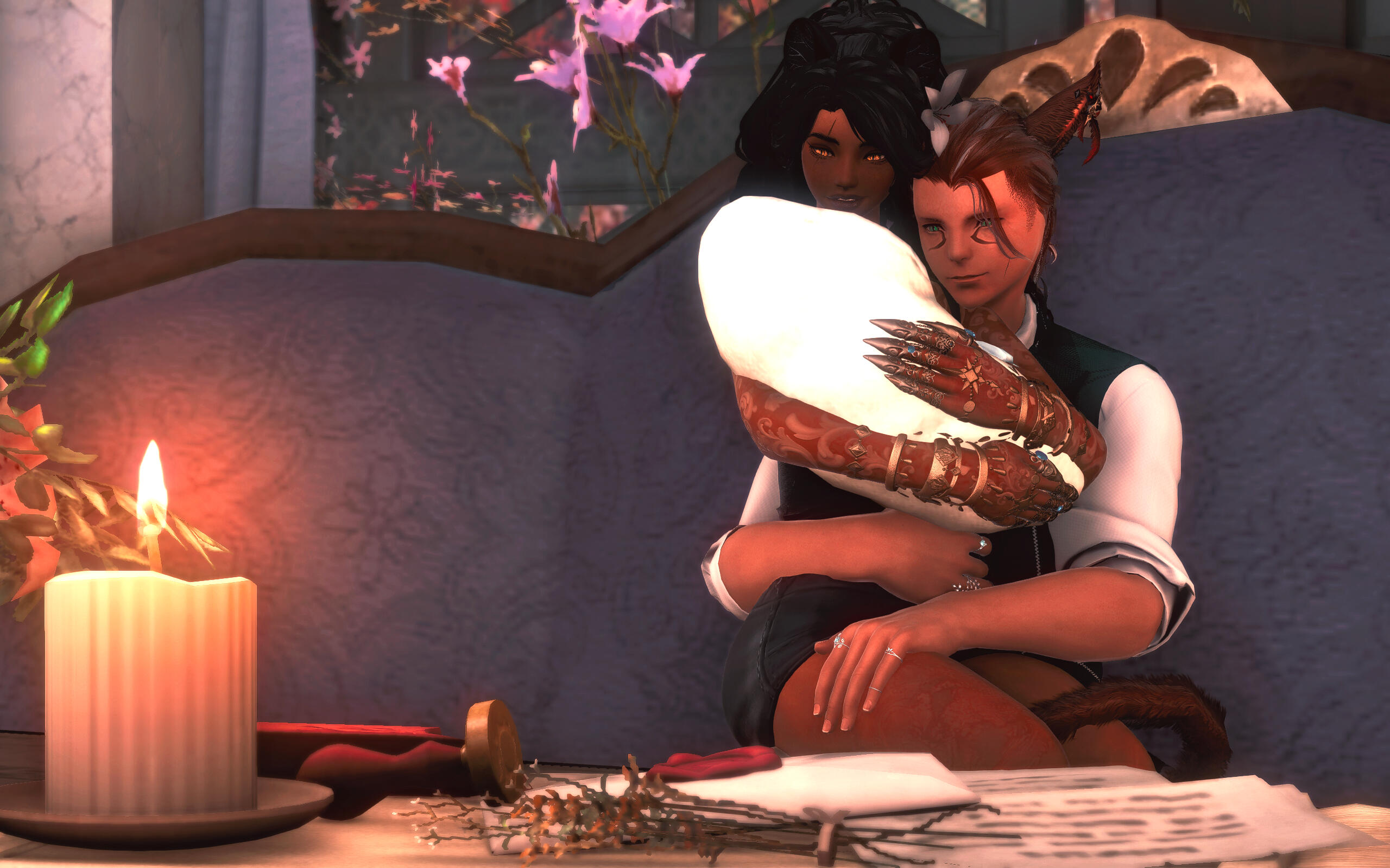 Nailah's history is muddled at best, often difficult for her discern due to her spotty memory from her early childhood. What she is able to share, however, is upfront and honest: most of her formative years were spent as a Garlean conscript in the snowy tundras of Ilsebard. She worked under a Praefectus of the VIth Legion with a rather intense fascination for aetherology and understanding how it works from a Garlean perspective. It allowed her a strange position of understanding aetherflow from a culmination of sources acquired by her mentor from various regions.Eventually, however, Nailah parted ways and escaped the Garlean occupation. She spent years in a variety of circumstances, some less reputable than others, until she eventually landed an opportunity assisting with managing a free company stationed out of Ul'dah. It was there that she met her eventual husband, E'lias Windjammer, and the two mutually decided to try and pursue their passions rather than fulfilling roles for the sake of coin.Their pursuits for knowledge eventually landed them in Sharlayan, and connected them to an old, eccentric astrologian by the name of Lady Alexandara Bienvenue. It was due to her charity that they received a sponsorship and, eventually, citizenship within Sharlayan.